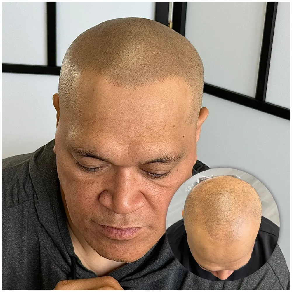 Of course! Some people call it SMP, others Scalp Micropigmentation, Hair Tattoo, Scalp Tattoo, or even Microblading of the scalp. Regardless of what you call it, we look at it as a collaborative effort between the artist and client. We will offer our professional advice on what hairline would look good on you but ultimately the choice is yours!